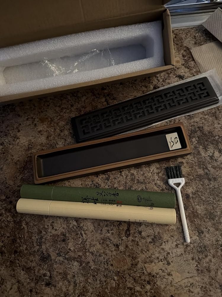 I love the color of this incense holder, and fits right in to my displayed items! It even comes with two tubes of incense that smells pretty good, a brush, and tweezers. For the price you paid, it’s of a great value.